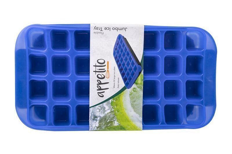 This flexible jumbo ice cube tray is easy to remove ice cubes and, with a supportive base, it remains stable while freezing.