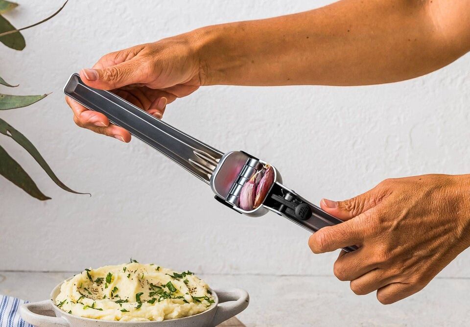 Clever design ensures all the garlic ends up in your meal – and not on your fingers!