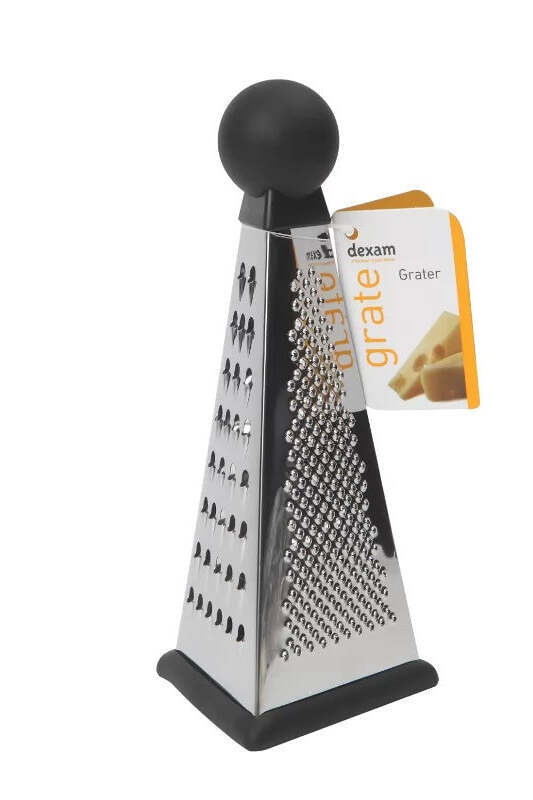 The Dexam Three-Sided Grater is a robust and safe kitchen tool featuring two grating and one slicing surface.