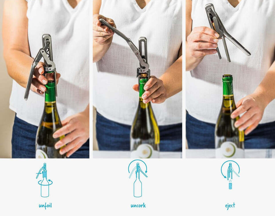 Winopen’s unique mechanism effortlessly removes and ejects wine corks in one smooth action.