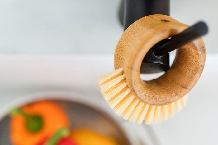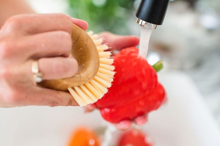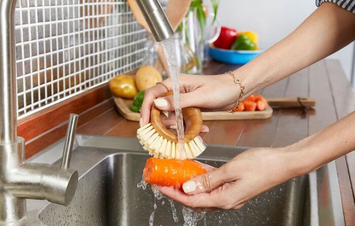 Combination of tough recycled bristles and more gentle plant fibre bristles, ideal for vegetables and fruit