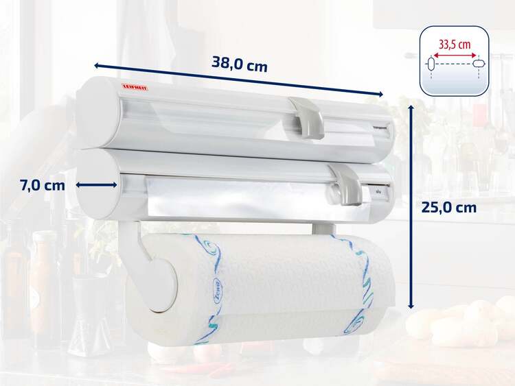 | > Shop > Tools > Kitchen Racks, Holders & Storage > Dish Racks, Kitchen Roll & Paper Towel Holders > Leifheit Rolly Mobil Wall Mounted Kitchen Roll Dispenser |