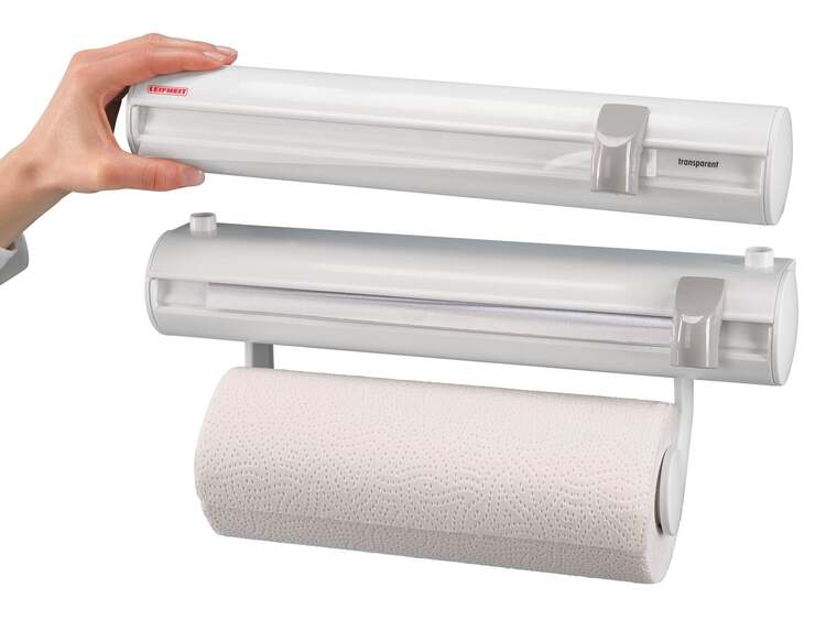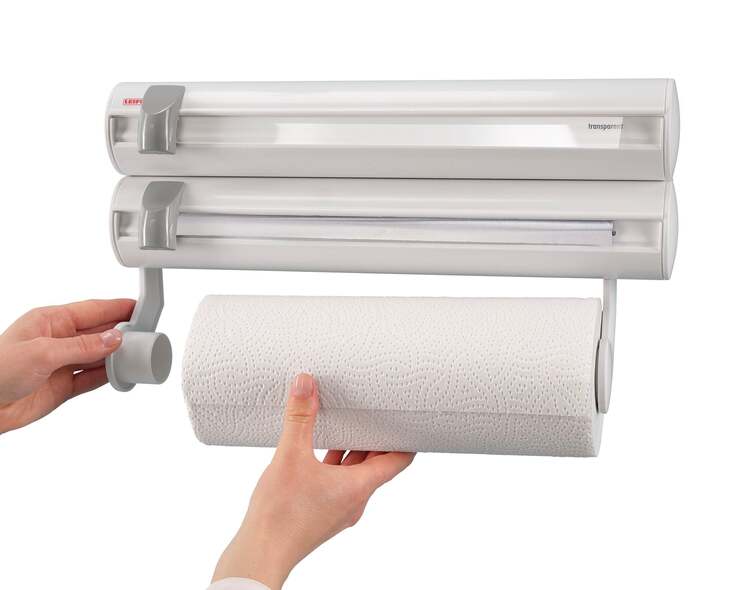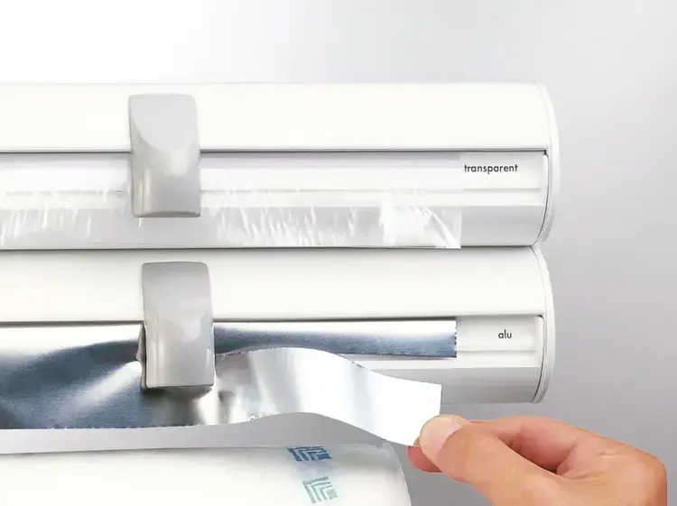 Easy to fit and equipped with practical extras, the upper roll holder is removable and the foil can be removed to cut where it is needed: on the table, in the storage room or for the barbecue in the summer.