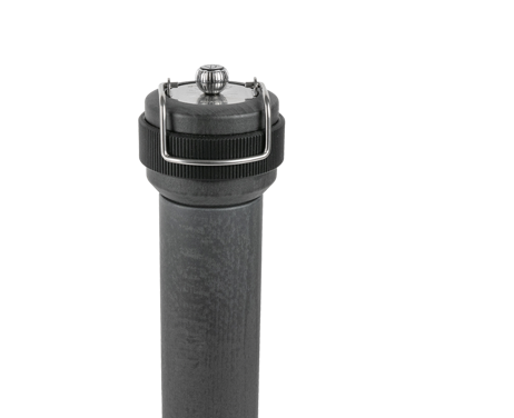 The all-terrain BBQ pepper mill is capable of shrugging off impact and withstanding intensive outdoor use with its rubber protection and stainless steel base.