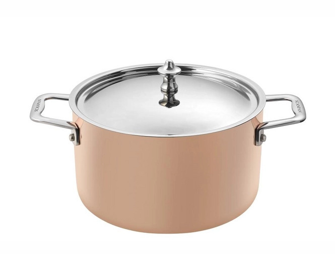 The principle in the construction of the Maitre D' Induction range invloves the carefully selected of hard-wearing 18/10 steel, an alluminium core for excellent heat distribution, a steel base for induction compatibility, and copper for beautiful design.