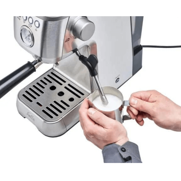 In addition to espresso, the Solis Barista Perfetta Plus can also serve hot water and is equipped with a professional 360-degree rotatable steam wand to serve a perfect cappuccino or latte.