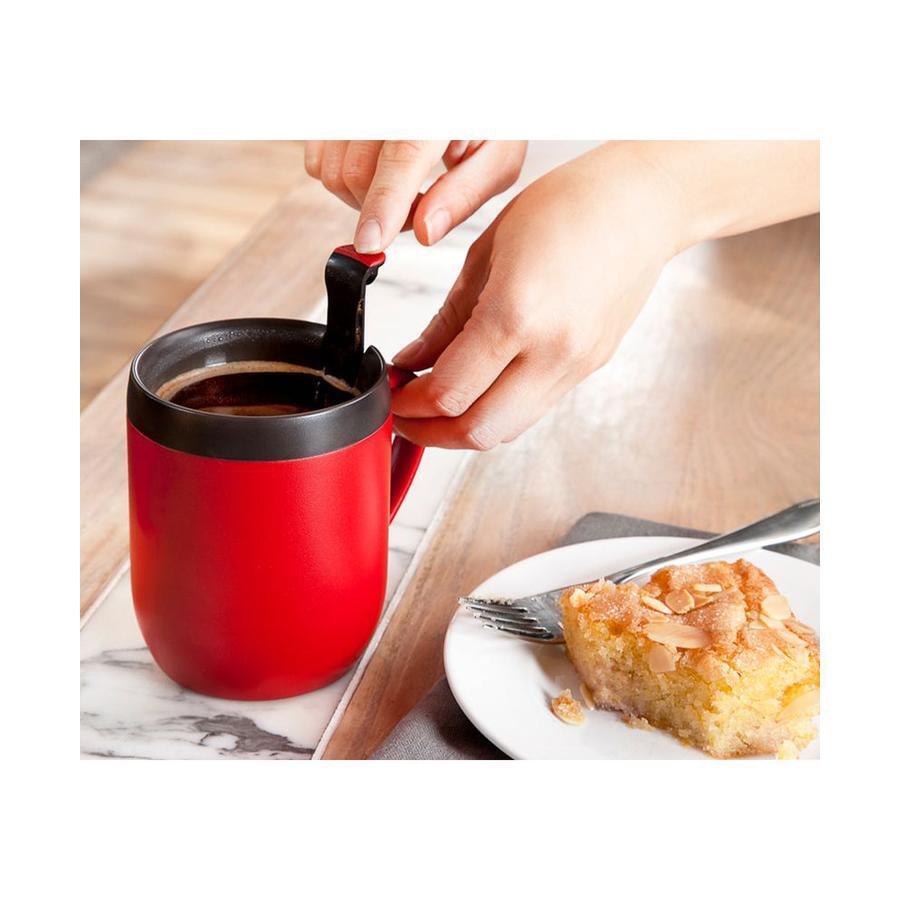 In order to use this mug, simply put in the ground coffee, pour in some hot water, and press the mesh filter to get the perfect brew for you to take to work or travel with easily.